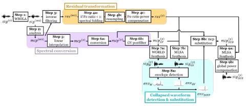 Мы представляем прямую модификацию формы сигнала для преобразования голоса на основе дифференциала спектра (DIFFVC), которая может быть непосредственно применена в качестве модуля генерации формы сигнала к моделям преобразования голоса. Недавно предложенный DIFFVC позволяет избежать использования вокодера, сохраняя при этом богатые спектральные характеристики, что позволяет генерировать преобразованный голос высокого качества. Для применения платформы DIFFVC необходимо предварительно обучить модель, которая может оценивать спектральную разницу по преобразованной входной речи F0. Это требование...
